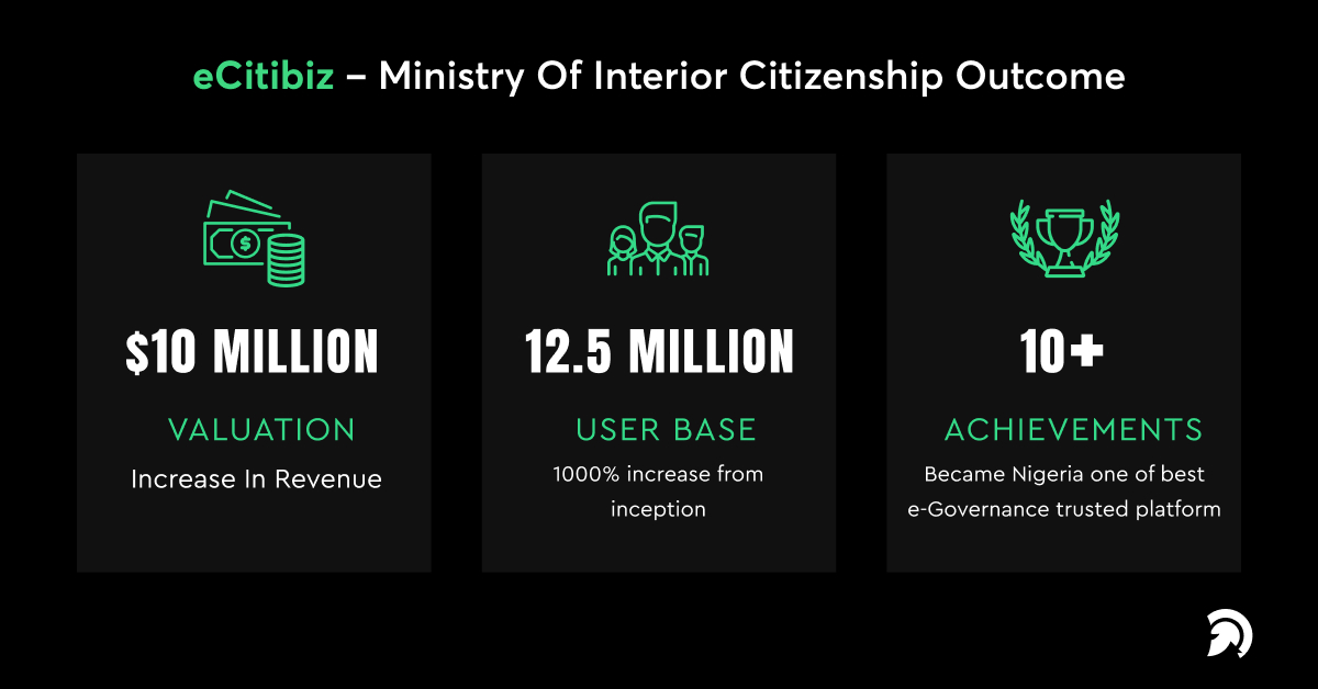 eCitibiz was a national project aimed at transforming the country’s digital infrastructure. eCitibiz is an e-Government platform created for the Nigerian Ministry of Interior to administer the Human Affairs process.